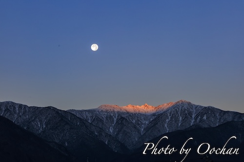 今年最後の満月が中央アルプス宝剣岳付近に沈んでゆきました。
